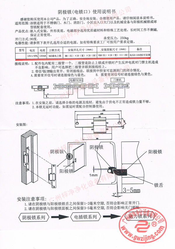 當(dāng)前位置:首頁(yè) >> 風(fēng)淋室配件 >> 陰極鎖(電鎖口)使用說明書陰極鎖(電鎖口)使用說明書 圖文詳解: 感謝您購(gòu)買使用本公司產(chǎn)品陰極鎖,為了正確、安全地安裝、合理使用產(chǎn)品,請(qǐng)仔細(xì)閱讀本說明書。 適用范圍:該鎖適用于不銹鋼門、木門、消防門、小區(qū)出入口大門以及機(jī)械設(shè)備與陽(yáng)極機(jī)械鎖或球型鎖配套使用。 產(chǎn)品優(yōu)點(diǎn): 嵌入式安裝,外形美觀。電磁部分選用優(yōu)質(zhì)磁材料和特殊工藝處理,長(zhǎng)時(shí)間工作不剩磁,保證正常使用。 開門方式:90度. : …[更多]