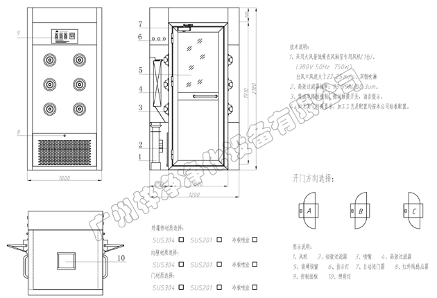 ? 1200*1000*2180mm風(fēng)淋室單人雙吹風(fēng)淋室?