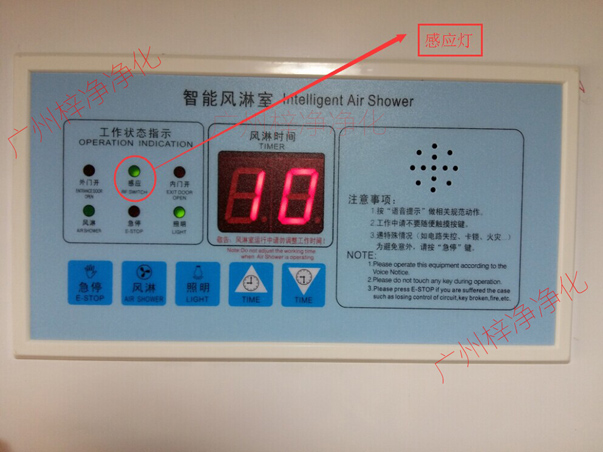 前幾天去售后一臺風淋室,2013年購買的,更換了風淋室控制器,風淋室可以吹淋了,正準備要走,被客人叫了回去。原來客人發(fā)現(xiàn)在風淋室關了前門人員沒有進去也會自動吹淋,于是我們風淋室安裝師傅觀察了一下風淋室顯示板,感應燈一直亮(正常情況下,感應燈是閃爍的),問題就出在這了,看下圖: