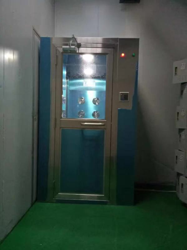 >>風(fēng)淋室由箱體、不銹鋼門、高效過濾器、送風(fēng)機、配電箱、噴嘴等幾大部件組成。>>風(fēng)淋室的底板由鋼板折彎焊接而成,表面為乳白色烤漆。