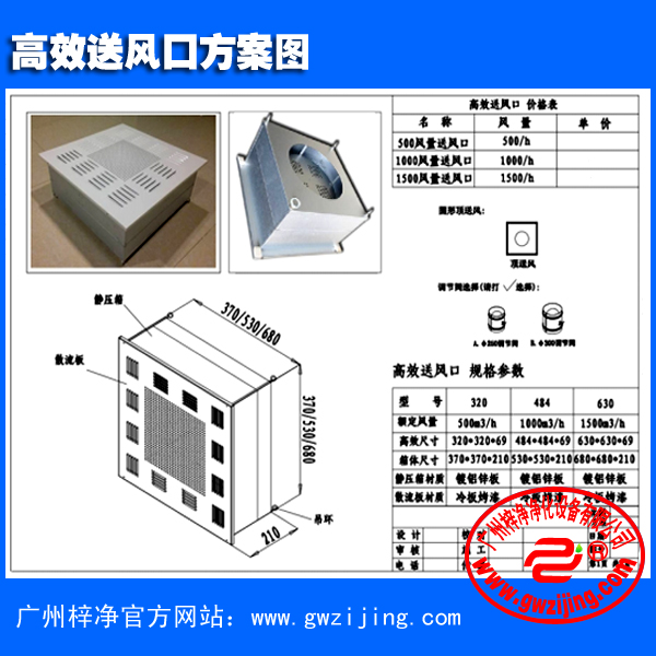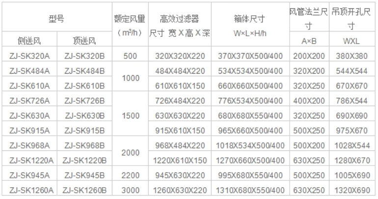 超薄高效送風(fēng)口標(biāo)準(zhǔn)規(guī)格技術(shù)參數(shù):