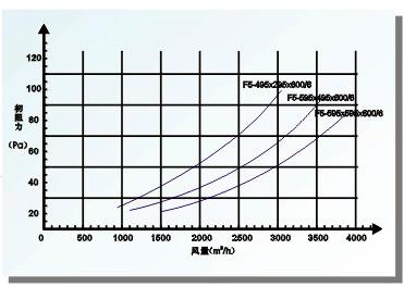 F5級(jí)袋式中效過(guò)濾器阻力與風(fēng)量關(guān)系: