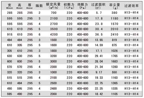 7、過濾效率:H10、H12、H13、H14.。