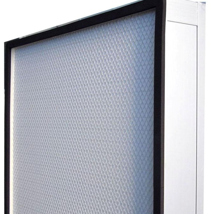 HEPA高效過濾器間隔線為漢高熱溶膠;密封為進(jìn)口漢高熱溶膠、聚氨脂;外框材質(zhì)為表面經(jīng)過陽極處理的鋁型材、鋁板、鍍鋅板或木質(zhì);雙面附菱形鋼板網(wǎng)和鋁網(wǎng)。