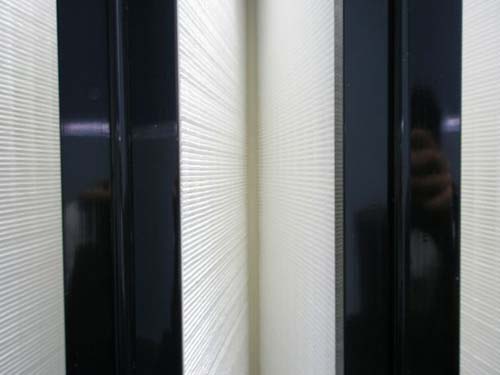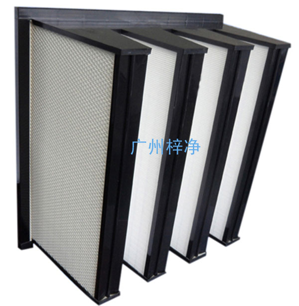 此處過濾器的效率規(guī)格一般為全部都是有隔板結構,褶距約8mm的玻璃纖維濾紙由瓦楞狀的鋁箔隔開。由于要耐高溫,濾紙與過濾器金屬外框間的粘合與密封問題是關鍵,密封結構要可靠,密封材料的成本又不能太高。