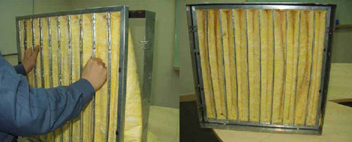 玻璃纖維中效過濾器安裝時,應使濾袋口長度方向垂直于地面,以保證送風的過濾效果和增加使用壽命。