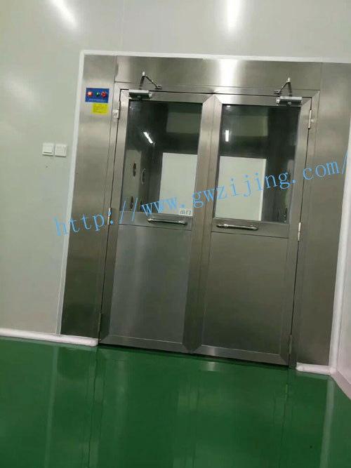 無隔板高效過濾器。三吹風淋室內置八邊形,噴淋嘴分布均勻。三吹風淋室是百級及千級無塵室的標準配置。為了達到更好吹淋效果,風嘴出風口風速高達25m/s以上,吹到人體上風速18m/s以上,出廠的初始風淋時間設置為15秒。