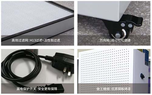 另外,需要說(shuō)明的是:有效果的家用FFU凈化器一定是有聲音的,要想達(dá)到99.99%的凈化效果,必須得有一定的風(fēng)壓才行,電機(jī)功率必須足夠,否則,要么凈化時(shí)間長(zhǎng),要么凈化效率不達(dá)標(biāo)!家用FFU細(xì)節(jié)展示圖