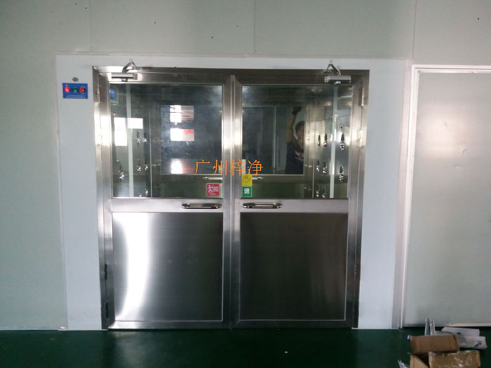 風(fēng)淋門多角度可調(diào)整的不銹鋼噴嘴經(jīng)久耐用;采用耐用美觀的不銹鋼門,配透明視窗;地面采用的是抗磨損容易清洗的不銹鋼板。