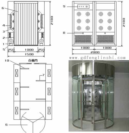 旋轉(zhuǎn)門風(fēng)淋室配置說明: