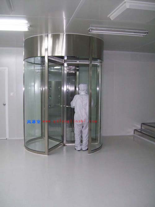 名稱:風淋室(又名空氣浴塵室、風淋房、風淋門、空氣吹淋室、AIR SHOWER,風淋設備,風淋機之類)是人員進出無塵室所必需的通道,并同時起到氣閘室密閉無塵室的緩沖作用,是進行人員除塵和防止室外空氣污染無塵室的有效設備,也是目前凈化車間人員通的必需設備。