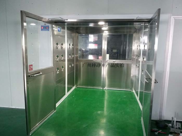 風(fēng)淋室主要是吹除工作人員衣物、發(fā)屑、體表所吸附塵埃;貨淋室是吹除人或物體表面吸附塵埃。