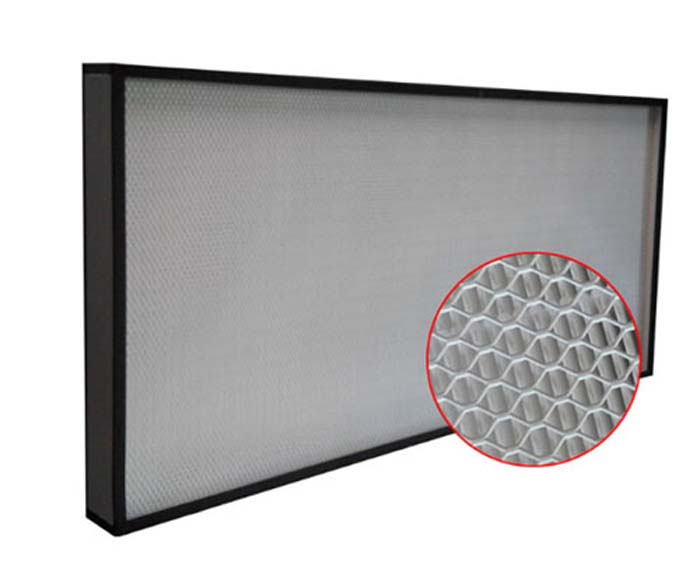 采用超細(xì)玻璃纖維紙作濾料,膠板紙、鋁箔板等材料折疊作分割板,聚氨酯密封膠