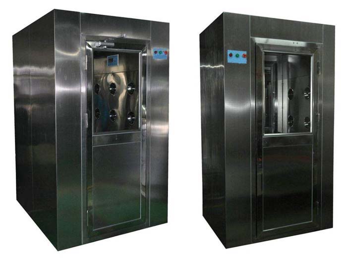 風(fēng)淋室是人/貨進(jìn)入潔凈室通道,起到氣閥室密閉潔凈室的作用??梢詼p低人/貨進(jìn)出潔凈區(qū)所帶來(lái)的污染問(wèn)題。為了減少由于人/貨進(jìn)出所帶來(lái)的大量塵埃粒子,經(jīng)過(guò)空氣過(guò)濾器過(guò)濾后的高速潔凈氣流由可旋轉(zhuǎn)噴射至人/貨上,有效而迅速的清除人/貨從非潔凈區(qū)所帶來(lái)的塵埃粒子及細(xì)菌。