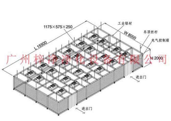 潔凈棚采用工業(yè)鋁材(或不銹鋼方通、鐵方通噴塑)作為框架,風機過濾機組(FFU)送風,四周懸掛防靜電垂簾(或鋼化玻璃),其內部凈化級別可達到5~7級。適用于操作區(qū)內局部凈化級別要求高的區(qū)域。