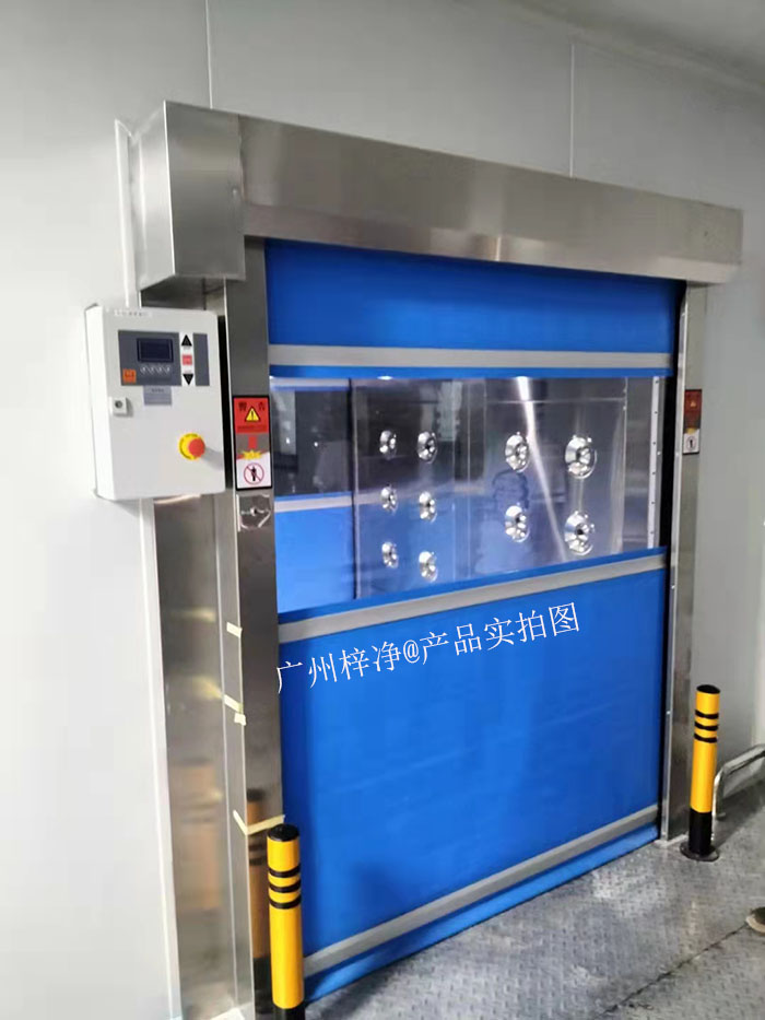 快速卷簾門(mén)風(fēng)淋室:采用快速卷簾門(mén)設(shè)計(jì),開(kāi)關(guān)速度極快,僅需幾秒鐘即可完成全開(kāi)的動(dòng)作。這種快速響應(yīng)的特性在人流較多或?qū)崈舳纫蟛惶貏e高的場(chǎng)合更為適合。