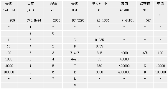 當前位置:首頁 >> 風淋室故障|風淋室維修技術(shù) >> 世界主要國家潔凈室標準(潔凈度級別)世界主要國家潔凈室標準(潔凈度級別)