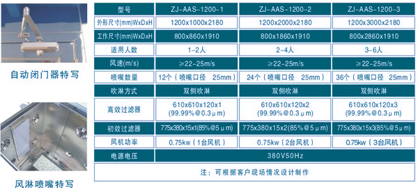 7.采用阿基米德螺線型設(shè)計(jì)的送風(fēng)吹淋系統(tǒng)達(dá)到≥25m/s的超強(qiáng)風(fēng)速,確保進(jìn)入潔凈室的人員及貨物達(dá)到徹底除塵的完美效果;