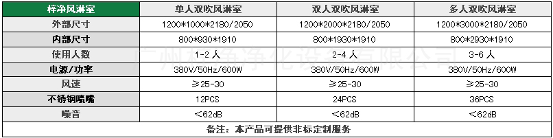 304全不銹鋼風(fēng)淋室尺寸性能參數(shù):