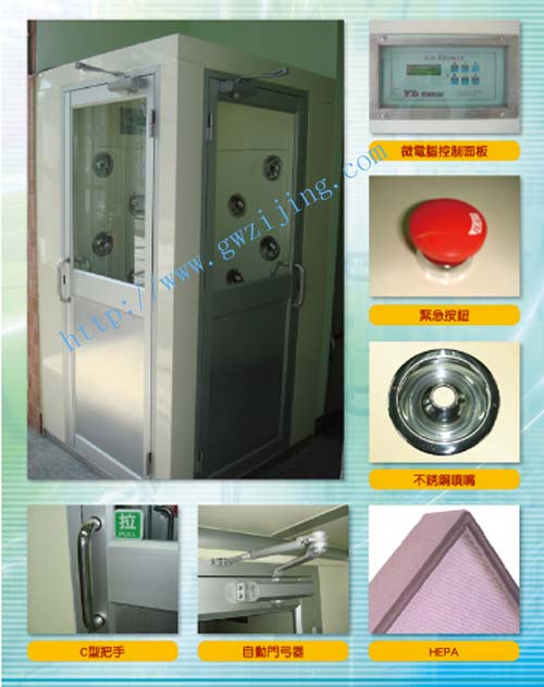 垂直流頂吹風淋室|頂吹淋室|三吹風淋室標準配置功能及特點: