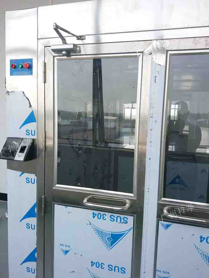 2、左右頂三吹風淋室門材質(zhì)可選:1.0mm冷扎鋼板多層酸洗、靜電噴涂或全不銹鋼制造帶半玻璃透明視窗門;開門配置:可選用手動門或自動門裝置。